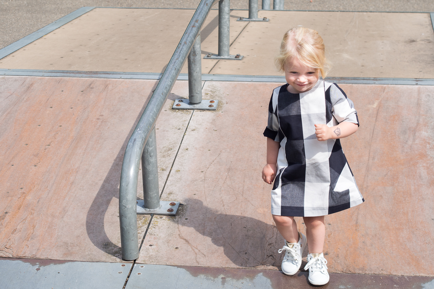 Ik ben eigenlijk best blij met wat deze Cosmo jurk geworden is. Jente ziet er schattig en cool uit tegelijkertijd. Ik plakte een tattoo op haar arm die haar kon overtuigen om mee te komen om foto’s te nemen. Win-win. 🙂