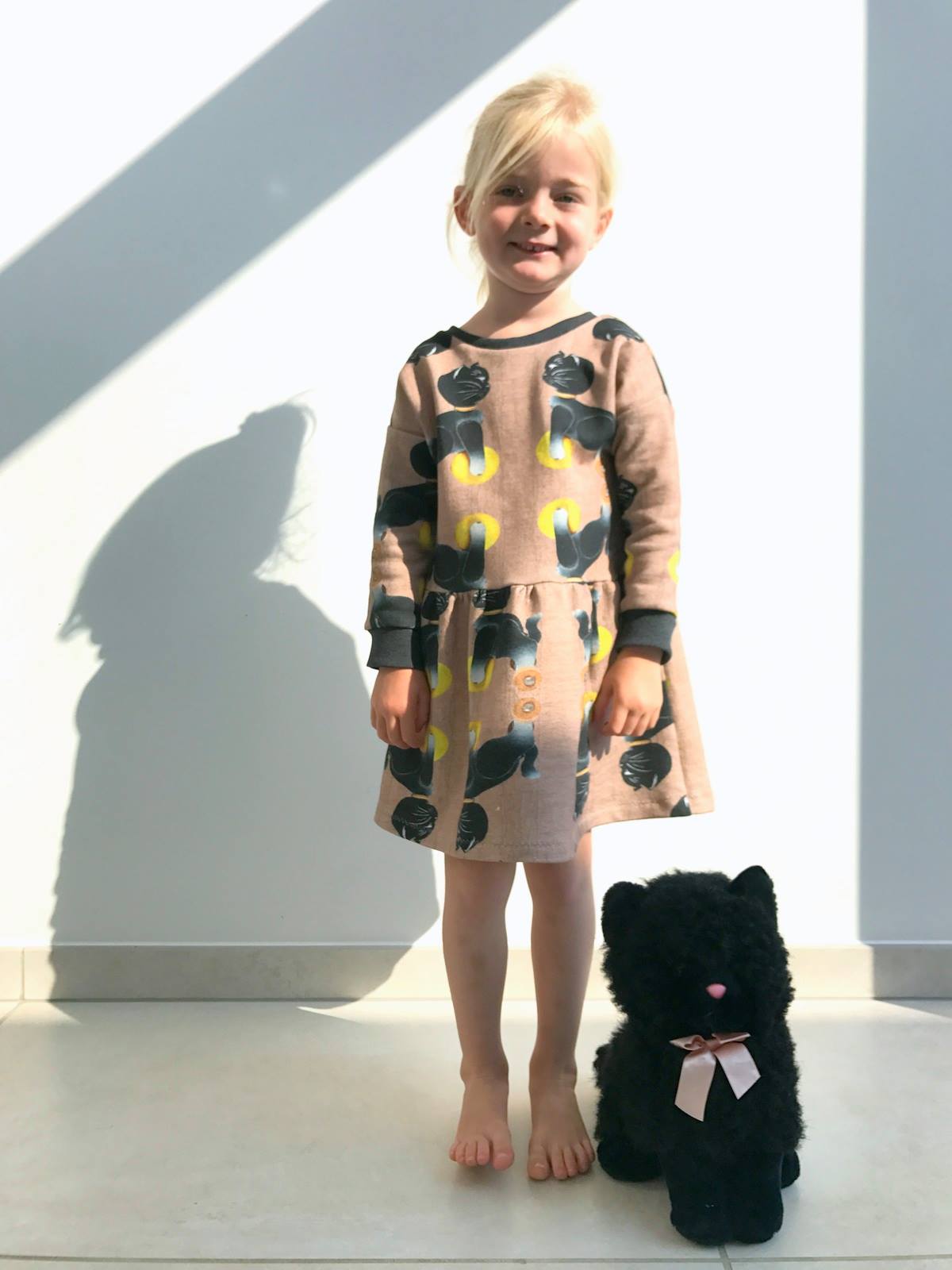 Eva, onze drukke citytripster ;-), maakte toch nog tijd om een Sien dress te maken voor haar metekindje. Hier ook schattigheid ten top. Ik ben al lange tijd grote fan van Eva haar blog en was vereerd dat ze het zag zitten om mee te testen. Ik blonk helemaal bij het zien van haar Sien dress, haar metekindje en haar foto’s. Merci, Eva, ook voor je stand-in model en je fijne feedback!