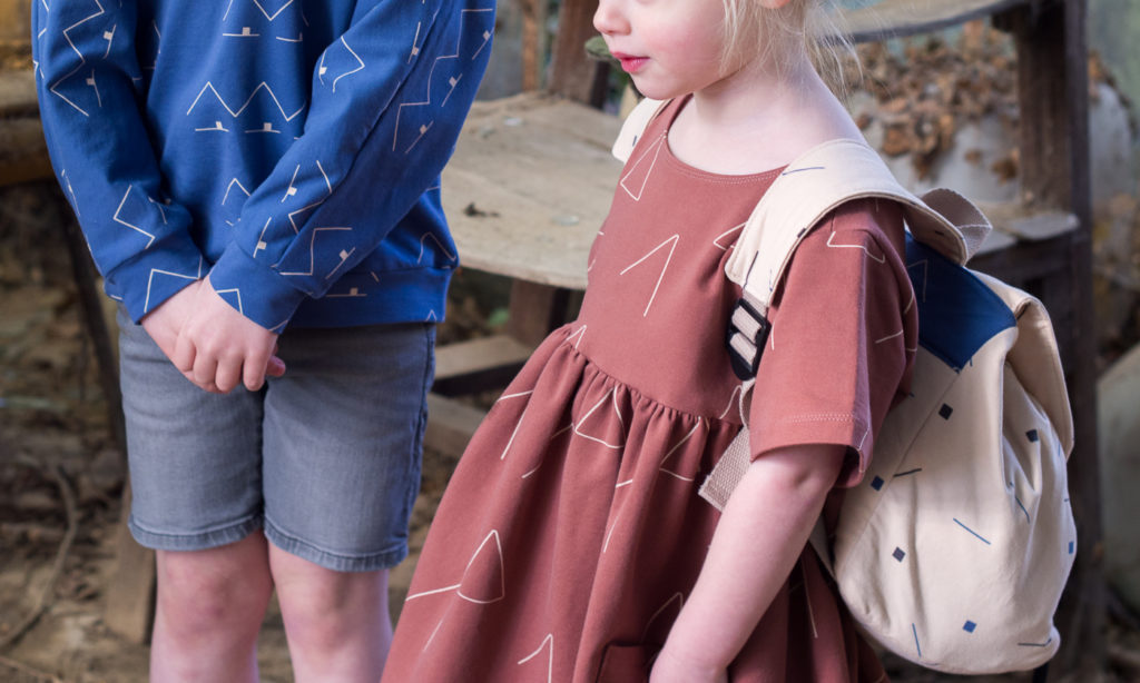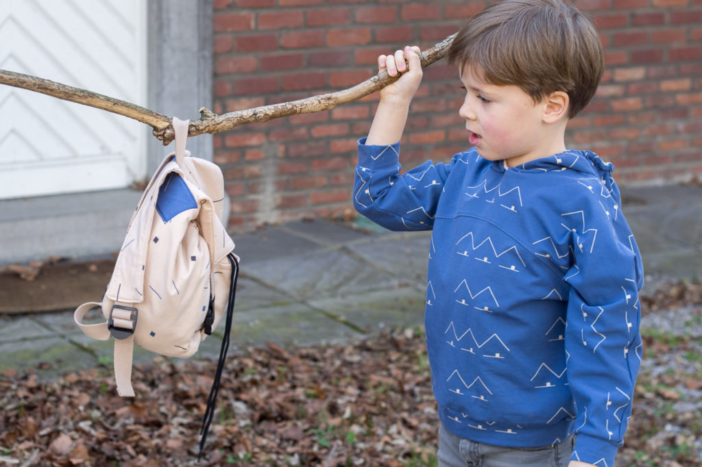 Met de confetti soft tone stof naaide ik een rugzakje met het gratis patroon van ‘My first backpack’ van Iris May Patterns. Dat lukt zeker in french terry als je het goed verstevigt met niet-rekbare plakvlies of met plakkatoen.