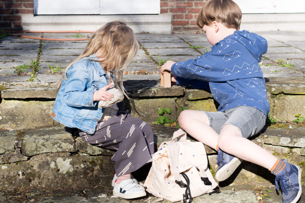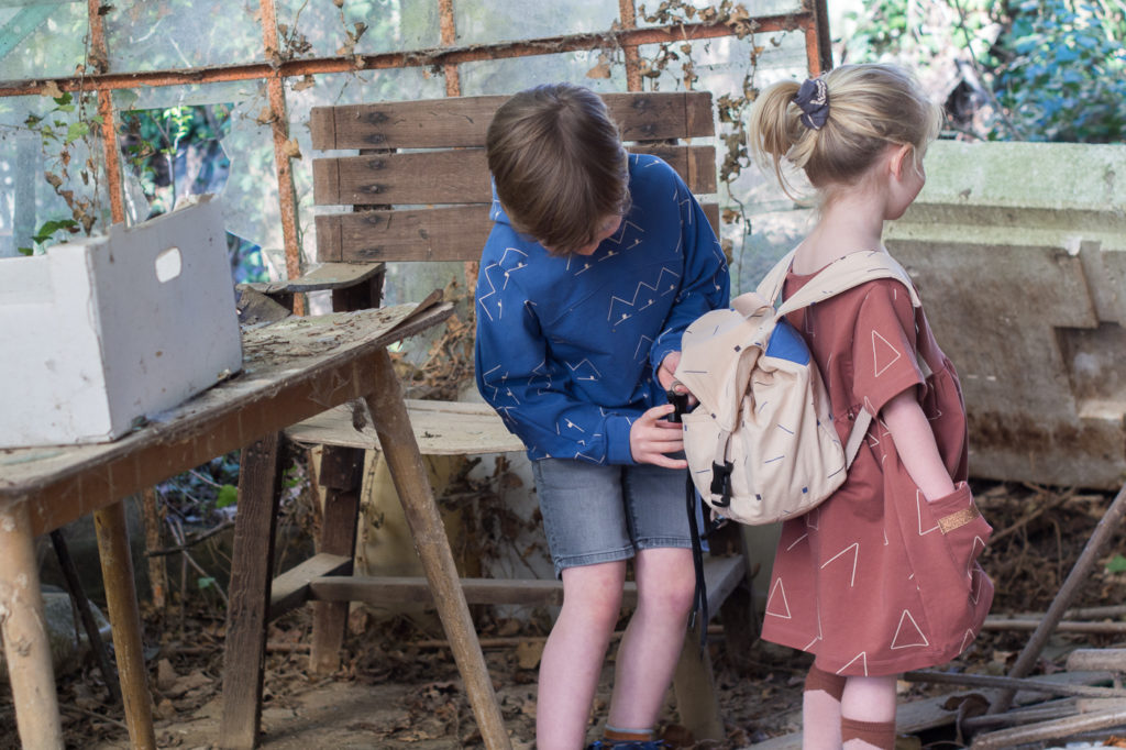 De foto’s voor de voorstelling van deze collectie werden dan ook genomen op het terrein waar ons project gerealiseerd zal worden. Het is een verwilderde plek maar hier en daar ook best gezellig. Bovendien is W., het tweede model van dienst één van de nieuwe buurjongens die samen met onze kinderen kattenkwaad zal uithalen de komende jaren. Kwestie van het plaatje hier te doen kloppen. 😉