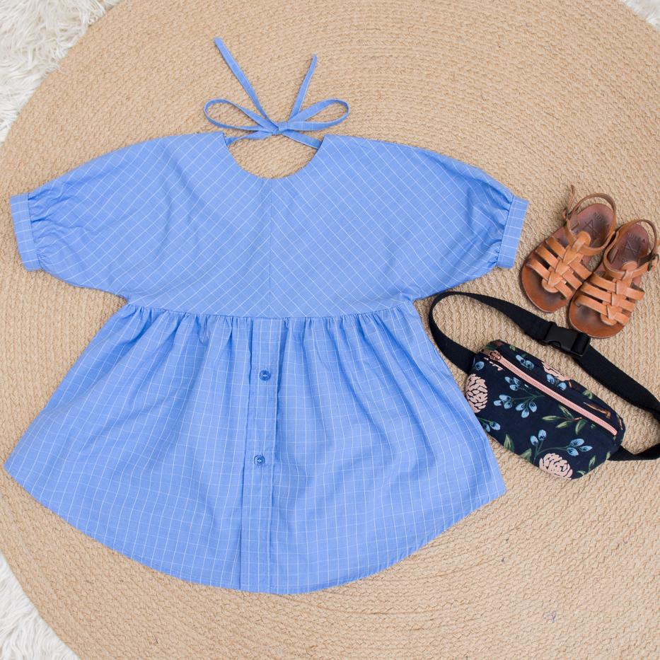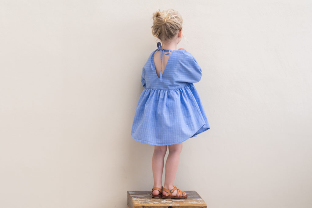 En let op, een verslavende patroon hack kan ervoor zorgen dat een mannenkast vol hemden plots een meisjeskast vol jurkjes wordt: Ik knipte deze Vita uit een mannenhemd dat ik kocht in een vintage winkeltje in Antwerpen. Zo’n winkeltje waar ze kleding per kilo verkopen. Ik zorgde dat ik het rokdeel uit het onderste stuk van het hemd kreeg zodat ik niet moest zomen (snel!!) en zodat de knoopjes mooi gerecupereerd konden worden.