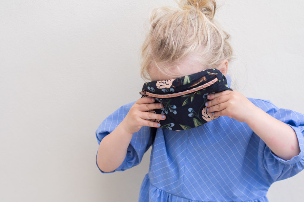 Onze kleuter going on puber wou per se haar ‘nieuwe handtas’ mee op de foto. En dus showt ons dametje hier nog eens haar mini Frankie fannypack! Dat patroon vind je trouwens nog steeds in de webshop! 🙂